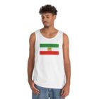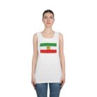 This lightweight tank brings a quiet, personal statement to warm-weather days. The simple tri-band flag graphic sits centered on a clean white field, small enough to feel intimate but clear enough to carry meaning. Wear it to neighborhood gatherings, weekend markets, or long walks when you want comfort without fuss. The classic cut and medium-weight fabric move with you; the ribbed collar returns to shape after repeated wear. It settles into your wardrobe as an easy layer — styled with denim, under an open shirt, or alone when the temperature rises — and feels lived-in from the first wear.