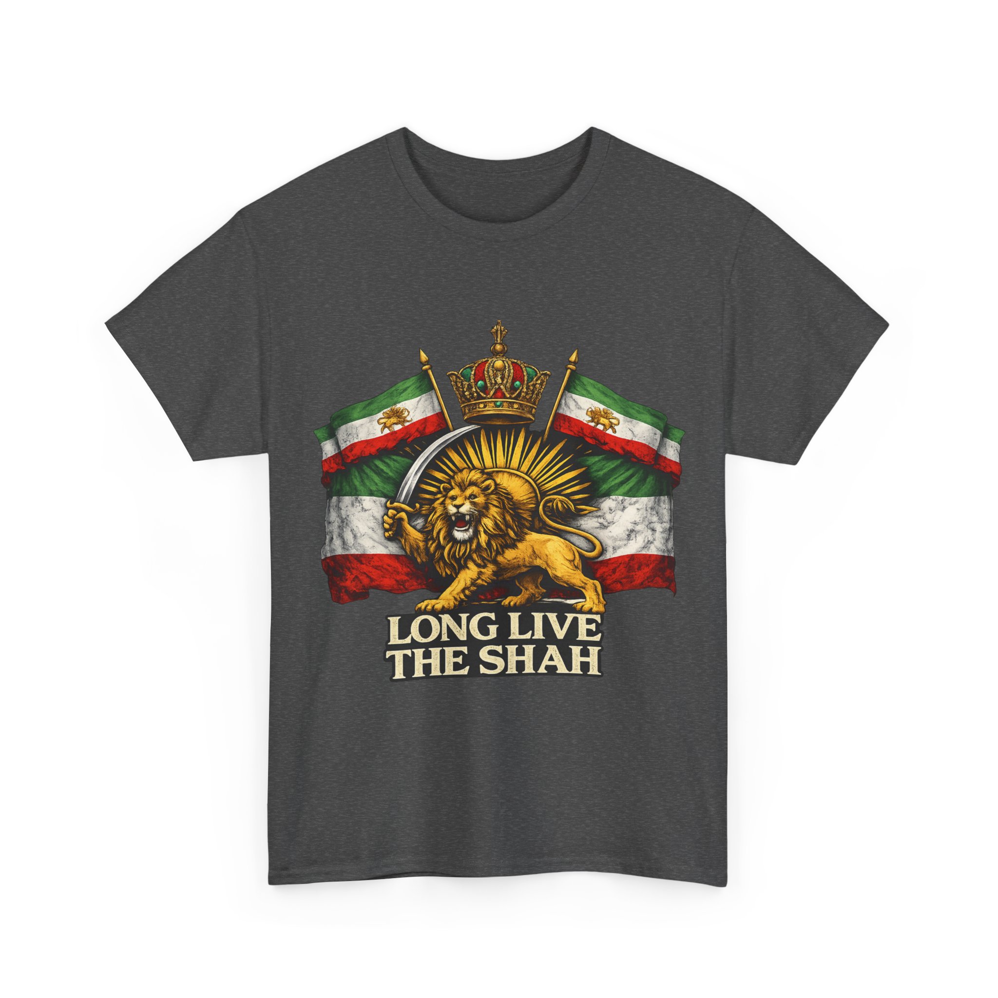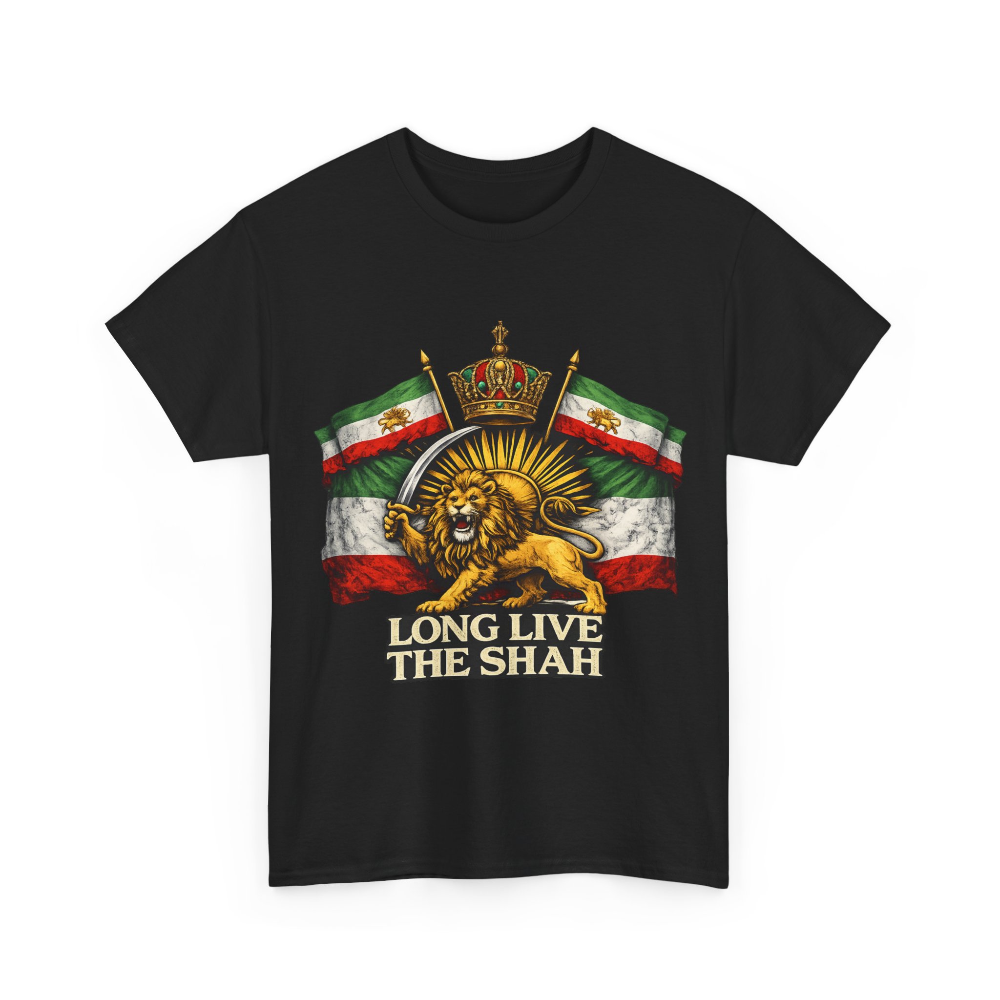 The Long Live The Shah — Sun & Sword Co. Tee honors the legacy of Imperial Iran and the Pahlavi dynasty. Featuring the iconic Lion & Sun emblem, this shirt is a tribute to Persian imperial heritage and the Iran that was — and will be again.